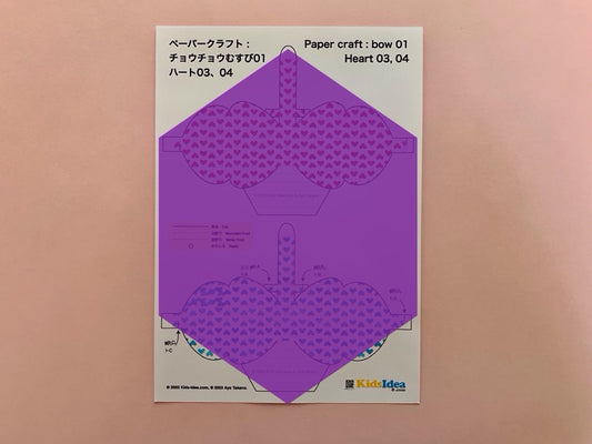 【ダウンロード商品】ペーパークラフト:立体(3D)のチョウチョウむすび:ハート模様 03、04