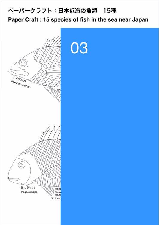 【ダウンロード商品】ぬりえ:ペーパークラフトなど(中サイズ、A4サイズ 5枚、カラー):「日本近海の魚類(15種)第1集」より