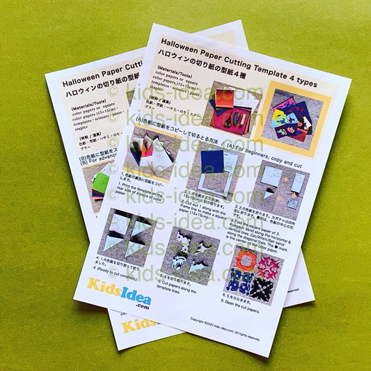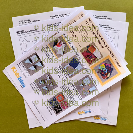【ダウンロード商品】ハロウィンの切り紙の型紙4種(ネコ、魔女、コウモリ、カボチャ)