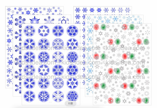 【ダウンロード商品】雪の結晶(スノーフレーク)模様の紙 6種類(A4サイズ)
